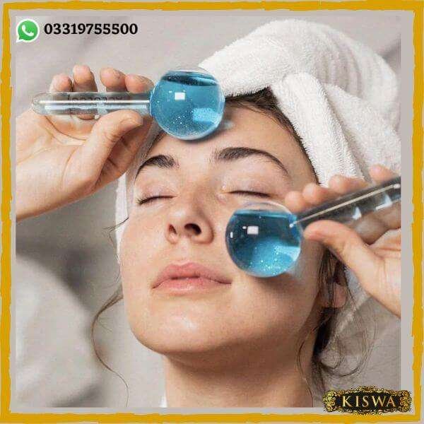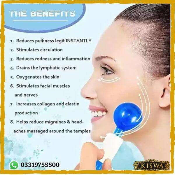 - Ice globed cool face roller massage helps skin appear youthful and revitalized