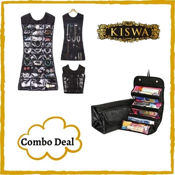 Hanging Jewelry Organizer & Roll n Go Cosmetic Bag- Combo Deal